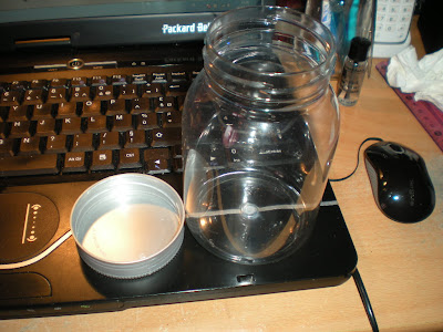 Ci-dessous, un bocal en plastique dans lequel était stocké des sels de bain au thé vert, qui me servira de stockage pour des perles.